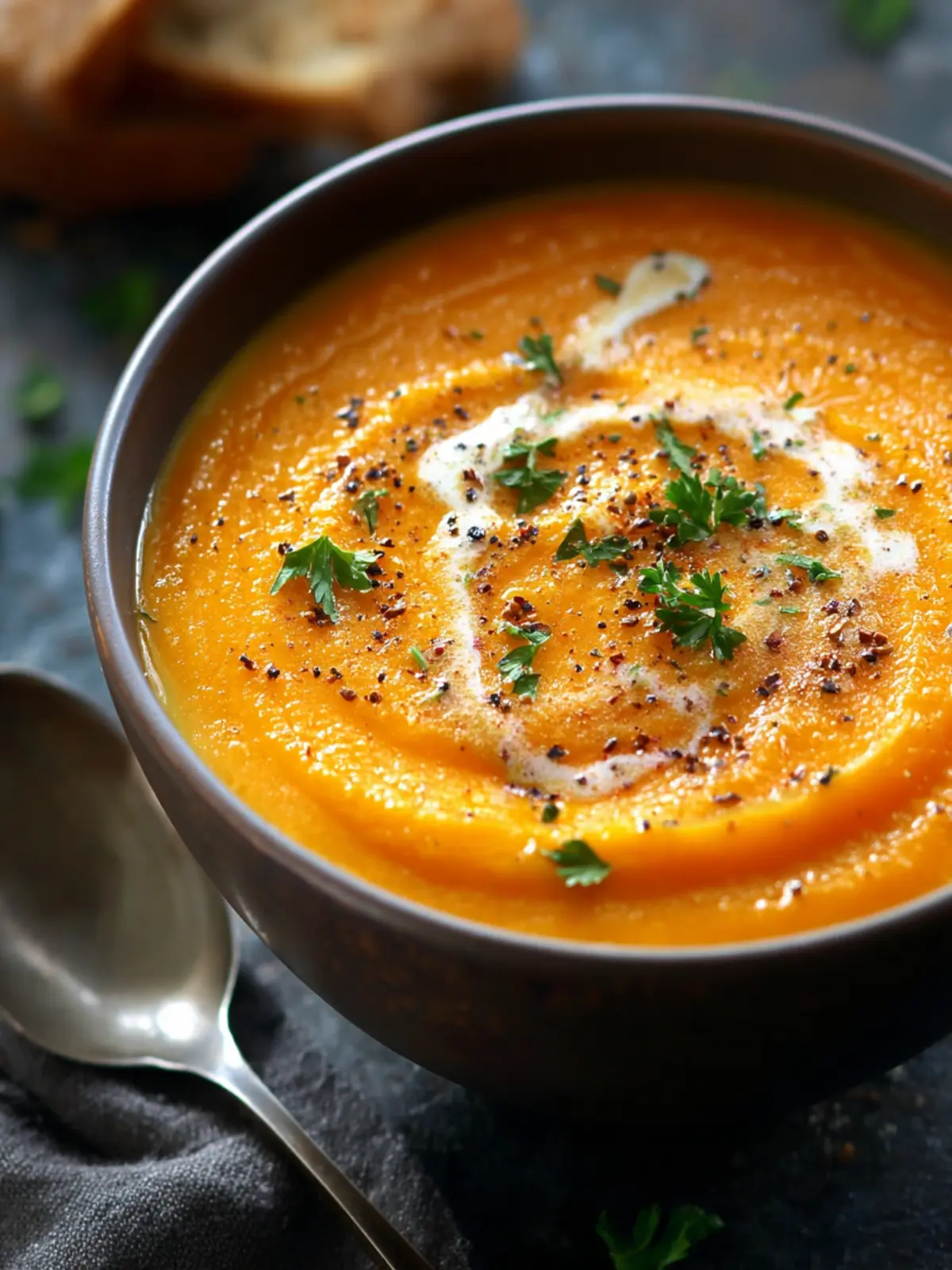 Swirl of Cream: For an extra touch of richness, consider swirling in a bit of heavy cream or a dollop of crème fraîche before serving. It adds an indulgent creaminess that contrasts beautifully with the soup’s texture.