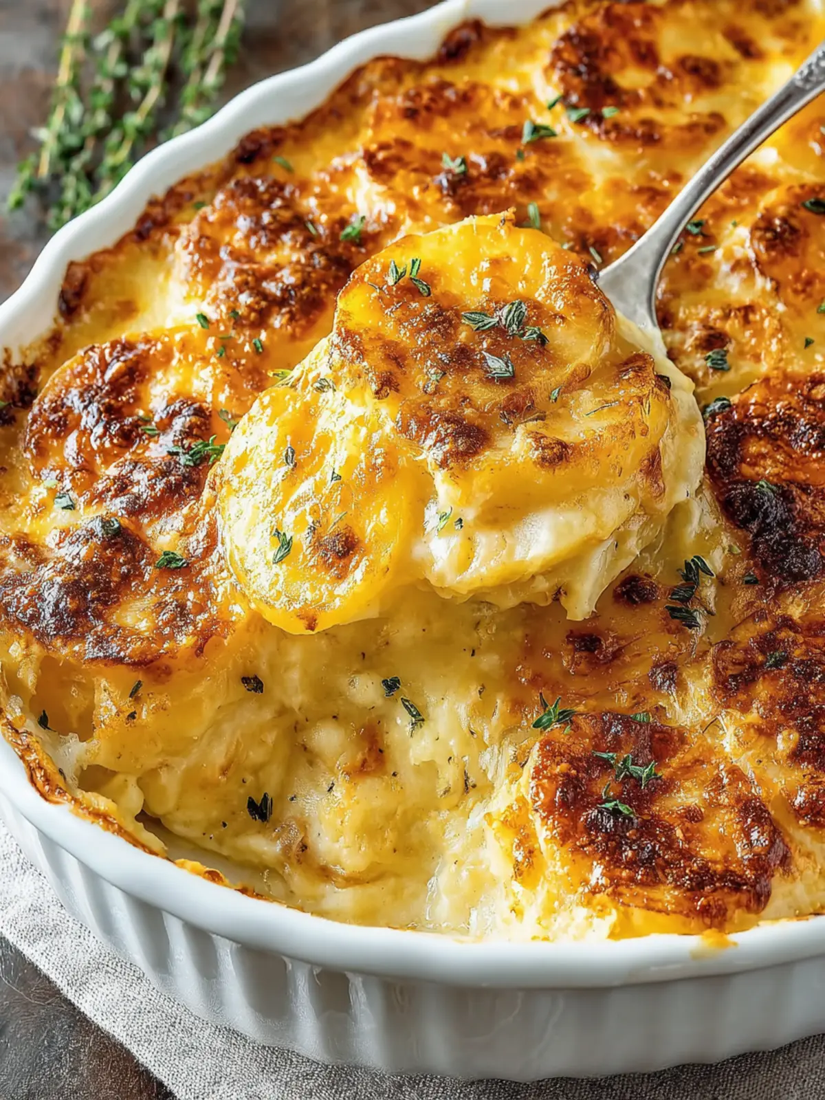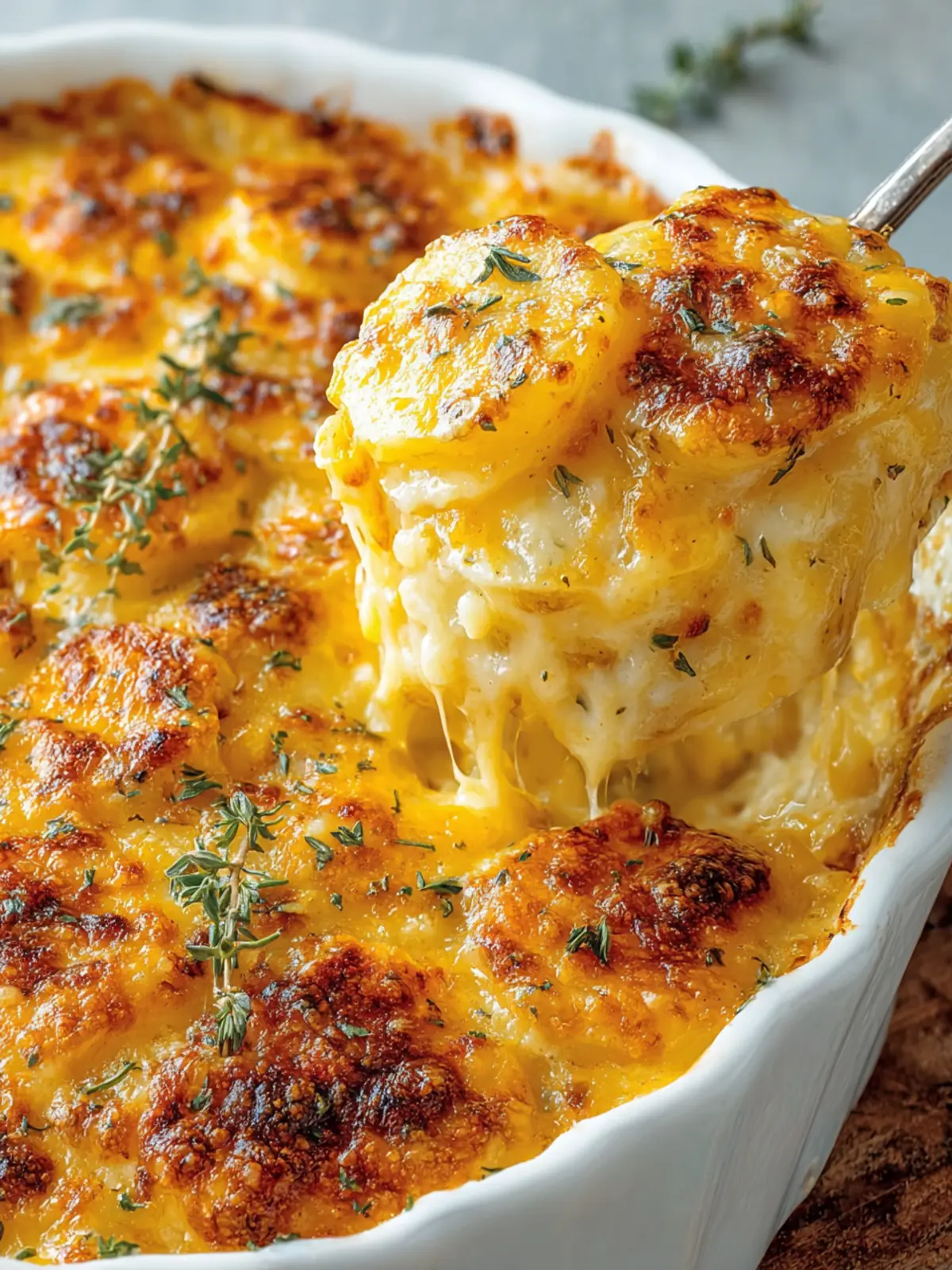 In wrapping up our love affair with cheesy au gratin potatoes, it’s clear that this dish embodies comfort and indulgence. The creamy texture fused with the rich cheese makes every bite an experience you won’t soon forget. Whether served as a side for a special occasion or as a cozy dinner centerpiece, these potatoes elevate any meal. They are a versatile dish; customize them with your favorite cheese blends or spices to make them your own. Reflecting on this recipe, it’s not just about feeding the body but also satisfying the soul—now that’s a win-win!