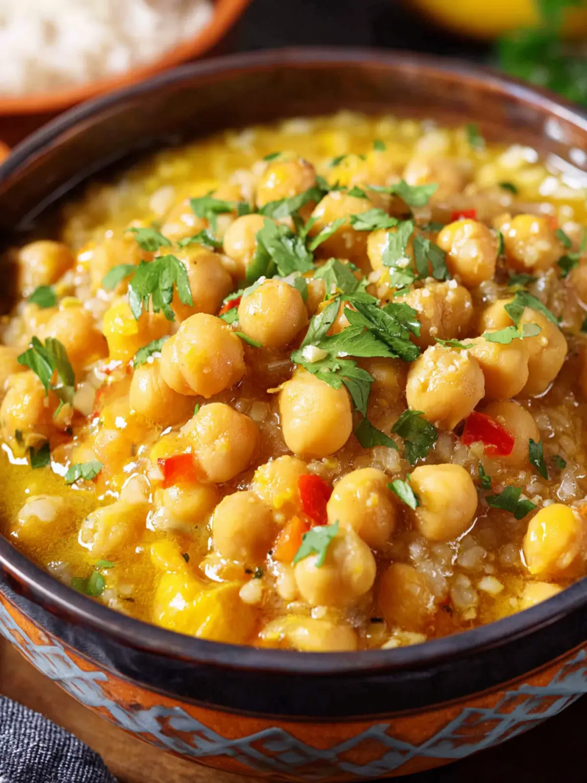A delicious and hearty chickpea curry served over rice.