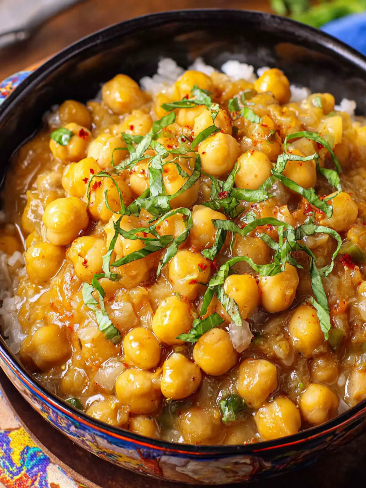 - Spoon the chickpea curry over cooked rice and serve warm.