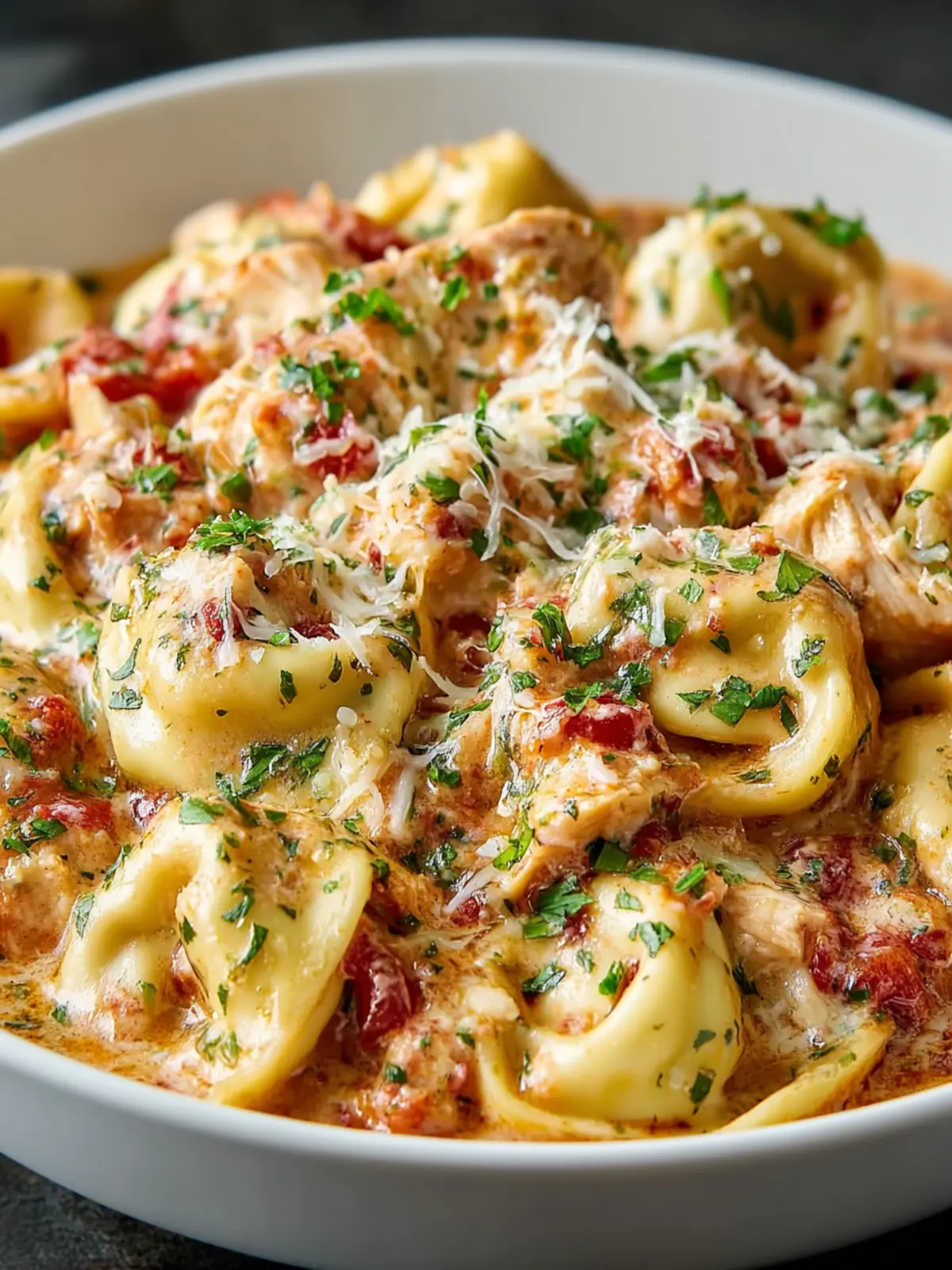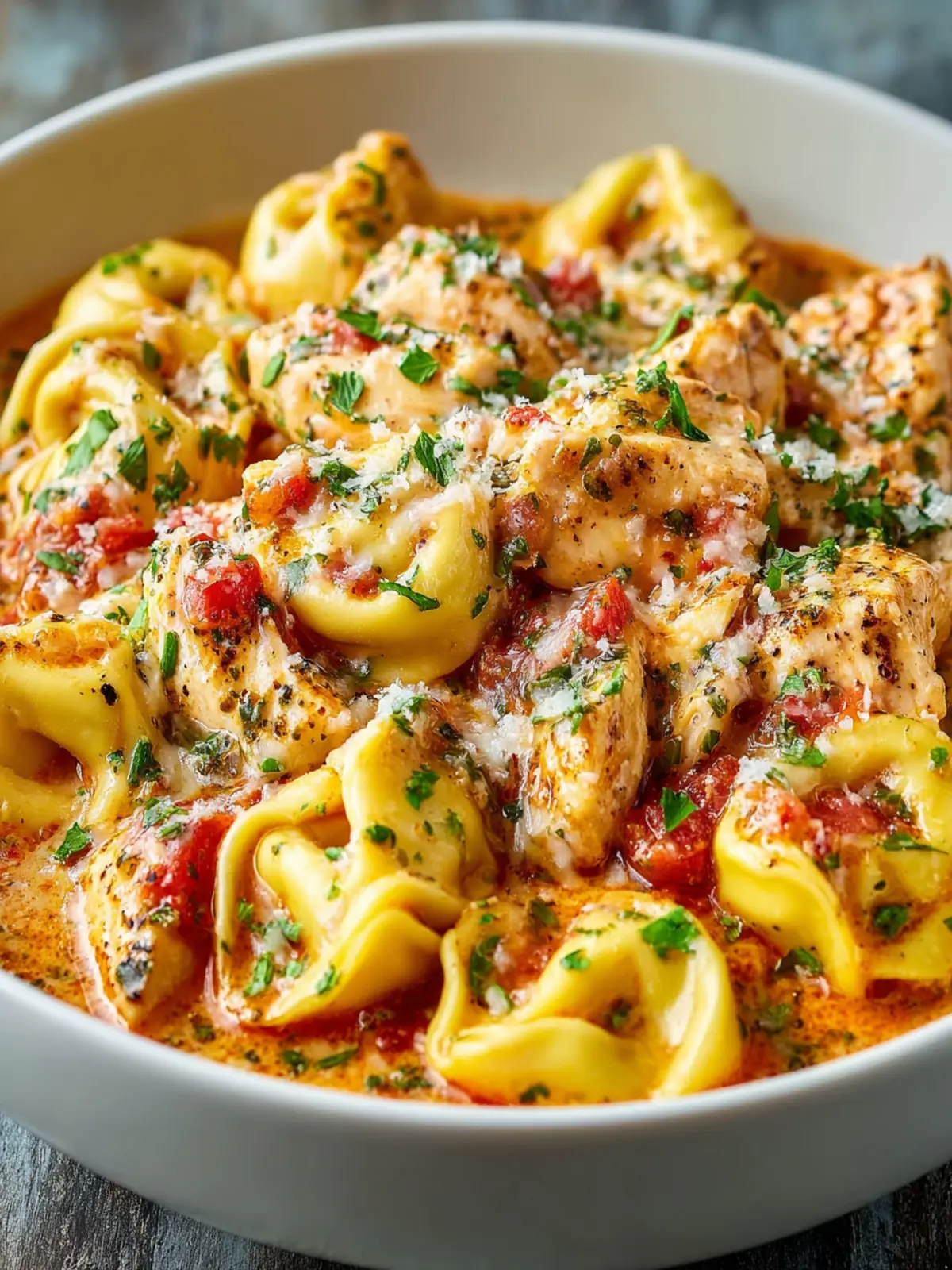 The magic really happens when you throw in some garlic, diced tomatoes, and a sprinkle of Italian herbs. These ingredients create a vibrant, aromatic base that envelops the chicken and tortellini, transforming them into mouthwatering bites you won’t soon forget. Whether you’re cooking for yourself, hosting friends for a cozy dinner, or meal prepping for the week, this recipe checks all the boxes.