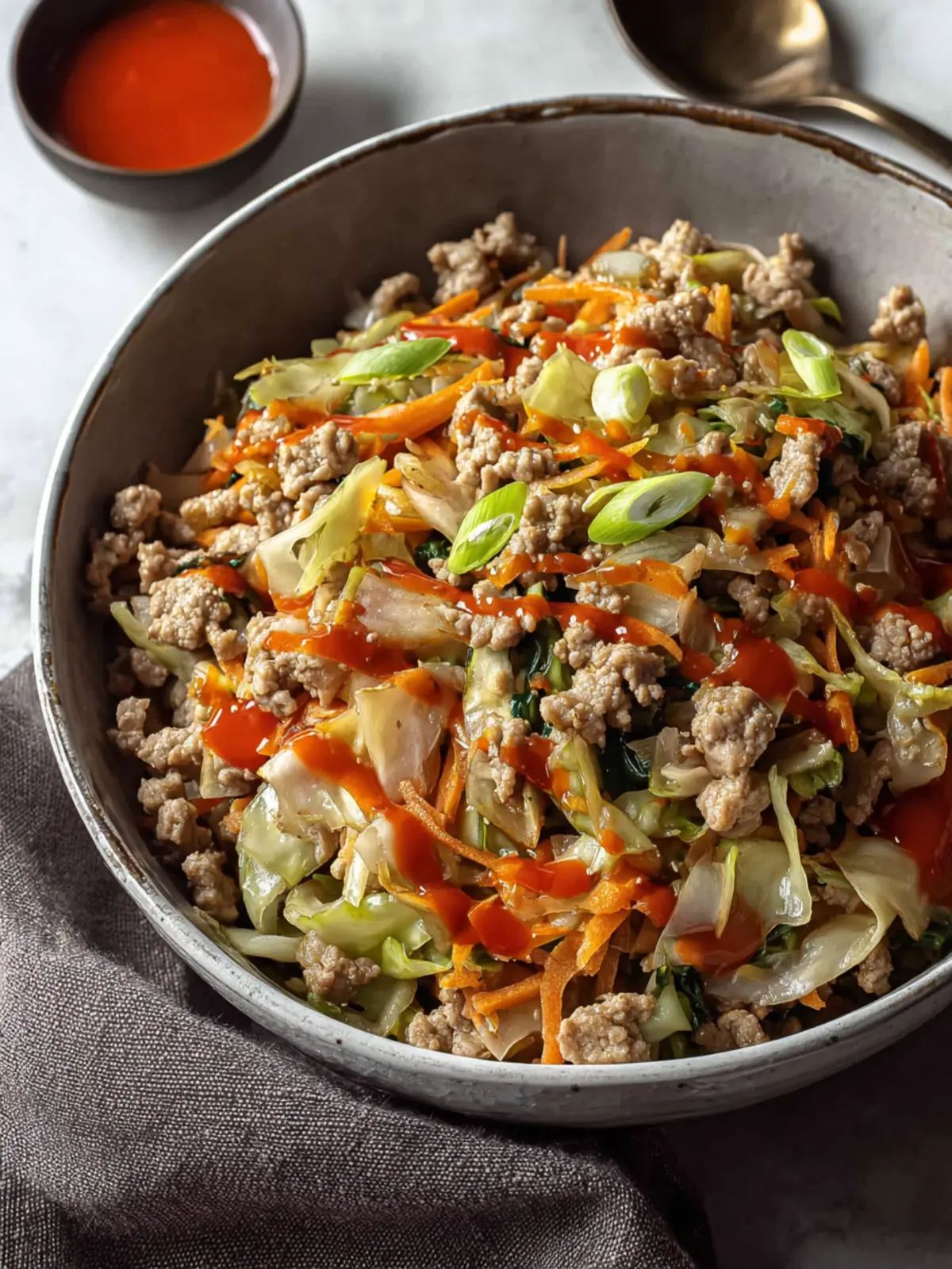 Ground Turkey: The heart of our easy lean green egg roll dish is ground turkey. It’s a fantastic source of lean protein that keeps the dish healthy and satisfying. Choose a leaner blend to keep the fat content low while still ensuring a juicy flavor.