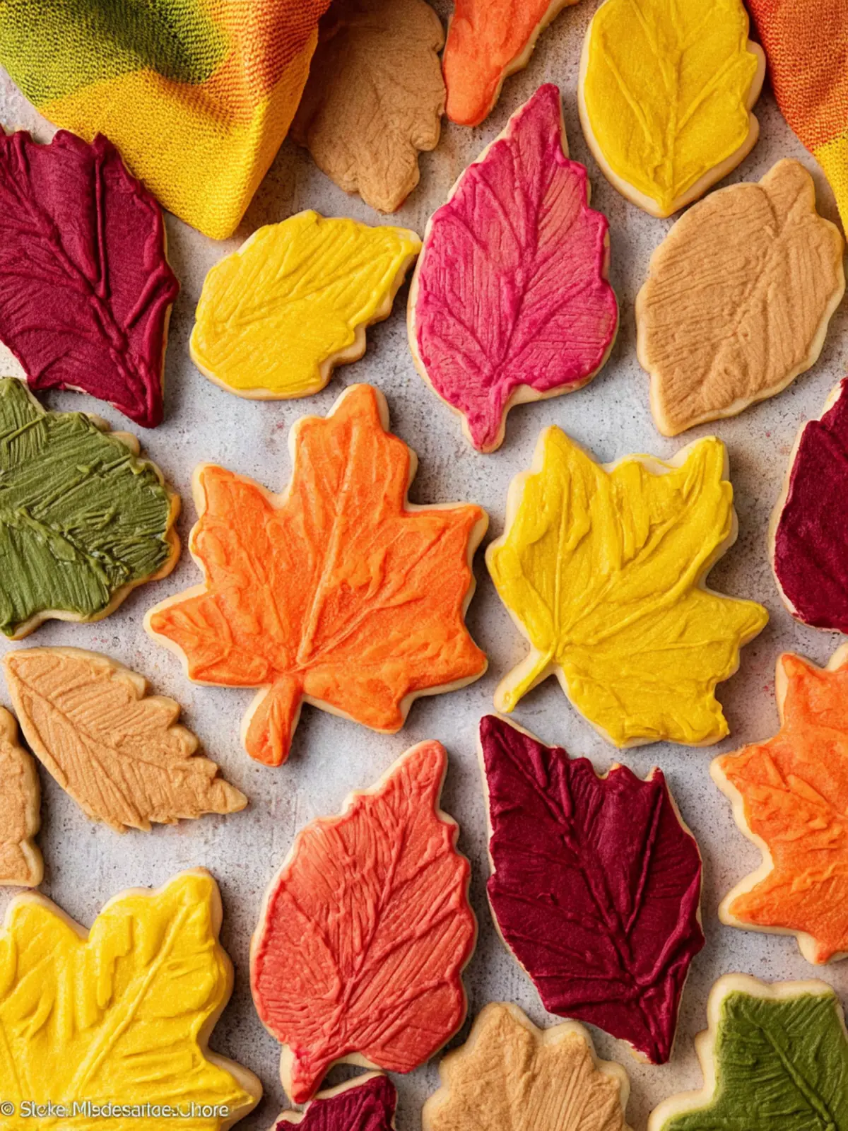 Delicious and colorful leaf-shaped cookies perfect for fall.