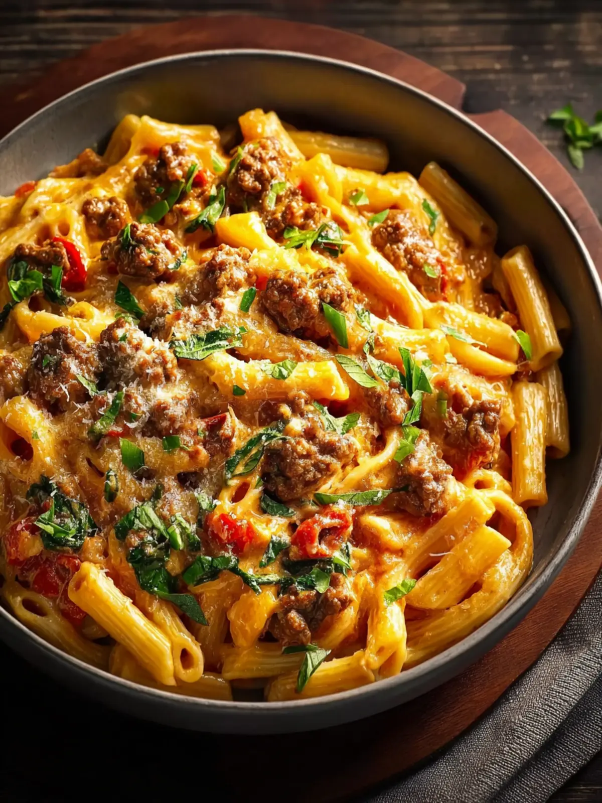 A delicious and creamy high-protein pasta dish featuring lean ground beef and a rich sauce.