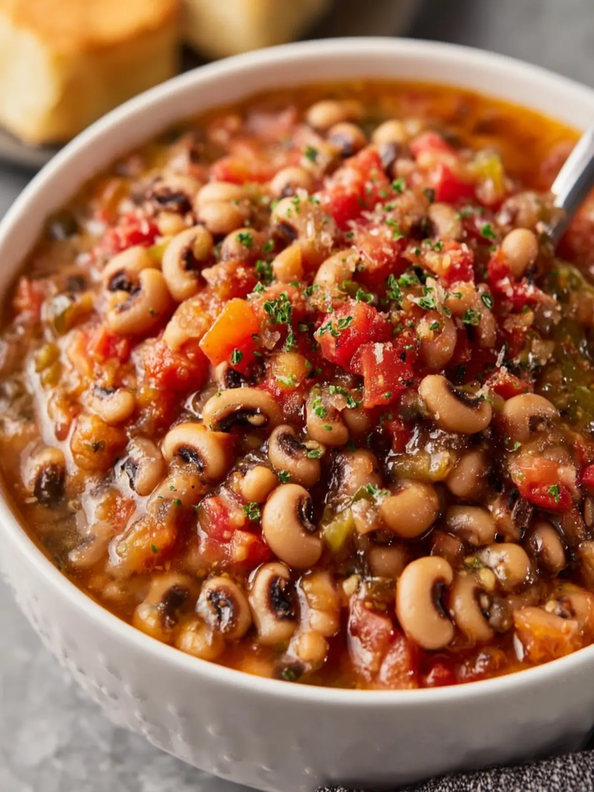 A hearty and flavorful dish made with black-eyed peas, ham, and spices.