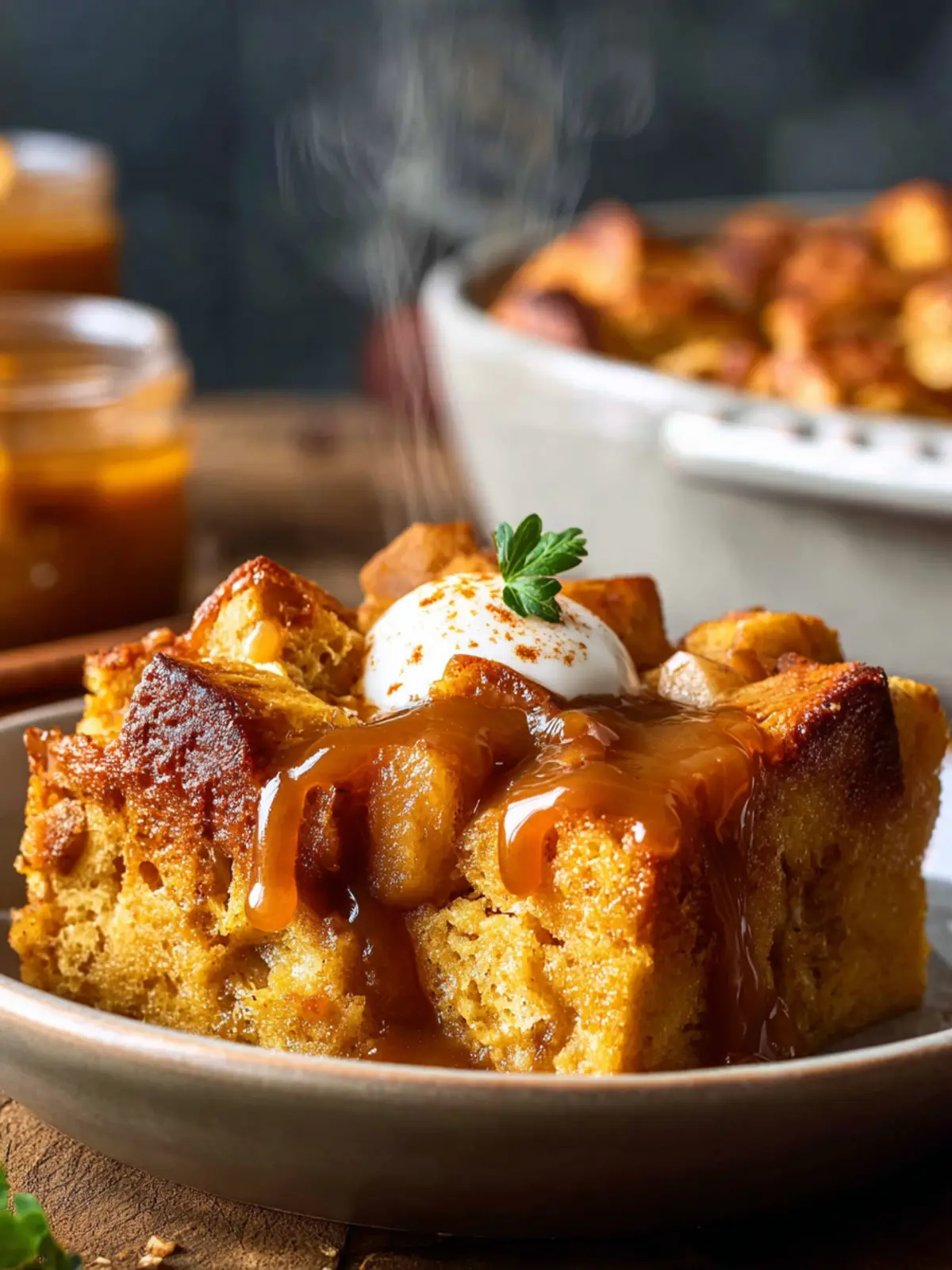 Don’t shy away from adding flair to your pudding! Drizzle creamy caramel or a rich bourbon sauce on top. You could also serve it with: