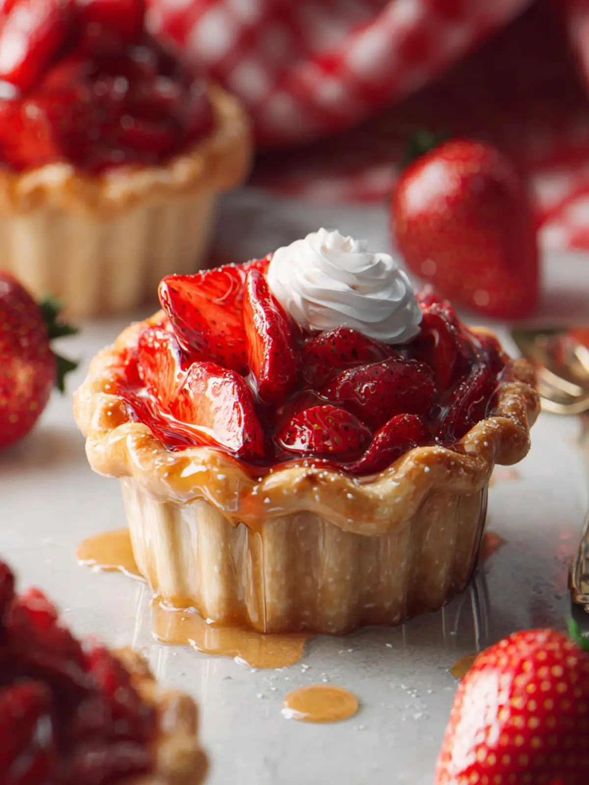 Whipped Cream: A dollop of homemade whipped cream adds a rich, fluffy texture that beautifully complements the mini strawberry pies. The slight sweetness enhances the strawberries’ natural flavor.