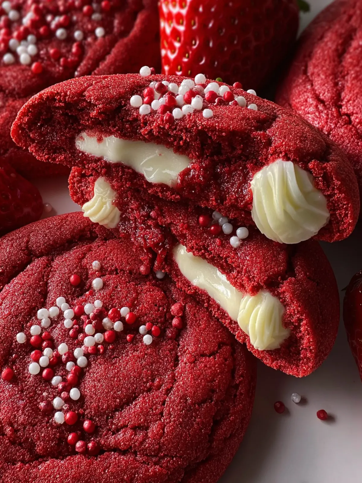 Delicious red velvet cookies loaded with white chocolate chips, perfect for any occasion!