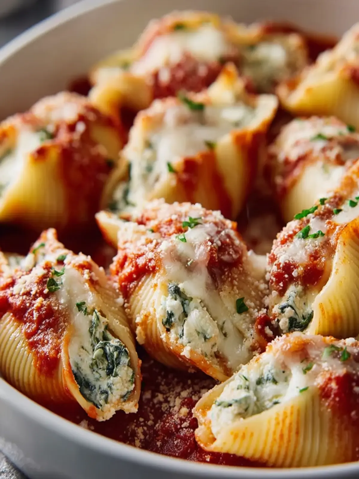 Pair with Fresh Salads: A crisp side salad dressed with a tangy vinaigrette complements the rich flavors of the stuffed shells. Arugula or spinach with cherry tomatoes and a splash of lemon is a favorite.