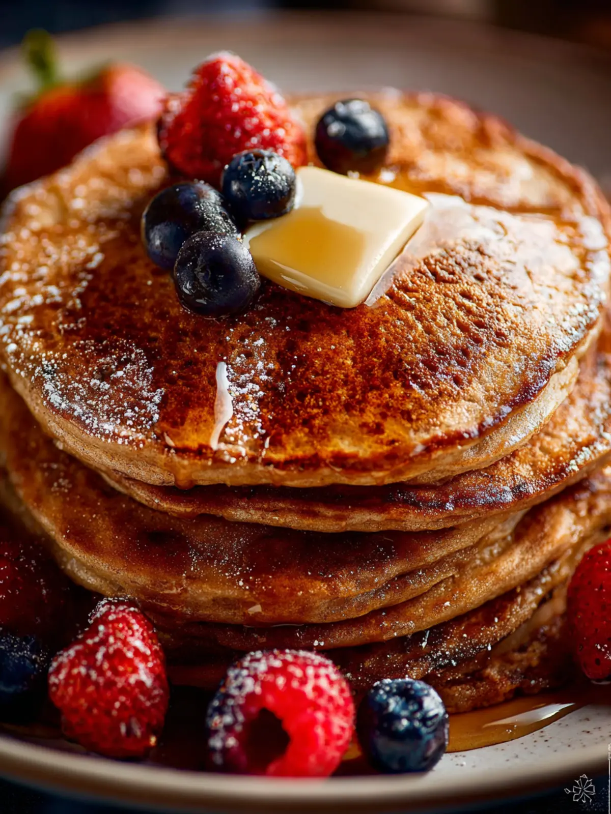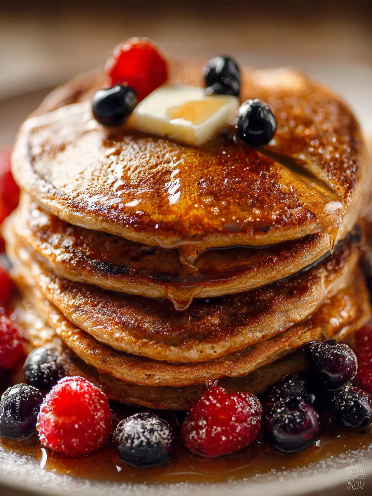 Delicious and fluffy pancakes made with whole wheat flour, perfect for breakfast!